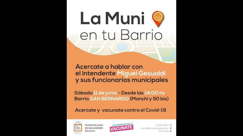 Así que ya sabes, este sábado 11 de junio a partir de las 14 hs, el intendente Miguel Gesualdi te espera para que te acerques a hablar con él y sus funcionarios Municipales en la esquina Manchi y 50 bis, barrio San Bernardo.