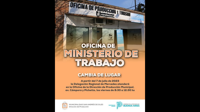 A partir del 7 de julio la Delegación Regional del Ministerio atenderá en la Oficina de la Dirección Municipal de Producción, en av. Cámpora casi Pichetto (Terminal de Ómnibus), los viernes, de 08:20 a 12:30 horas.