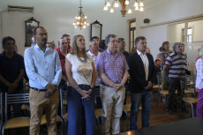 Presidió el acto, el intendente Miguel Gesualdi, acompañado por el presidente del H.C.D., Gustavo Lennard, quienes junto a la secretaria de Gobierno, Verónica Di Tata hicieron entrega de las medallas en homenaje a quienes en su momento defendieron nuestras Islas y el Atlántico Sur o sus familiares que también son parte esencial de esta causa.
