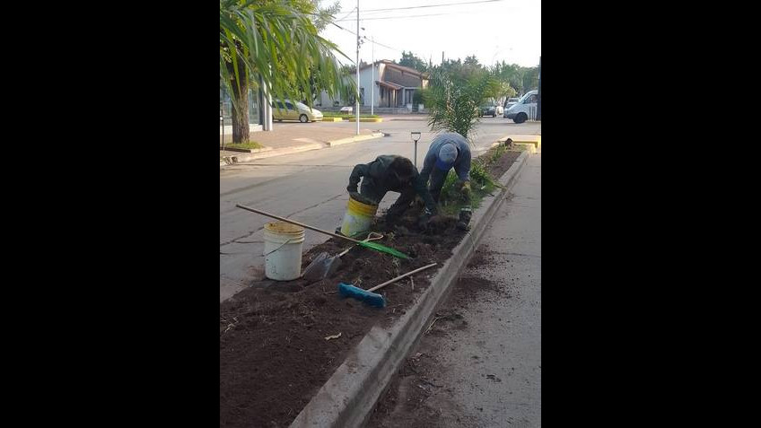 Personal de Espacios Verdes Municipal, a cargo de Adrián Garaglia, realizó mejoras en el primer cantero de av. Cámpora, entre colectora Norte y Malvinas Argentinas.