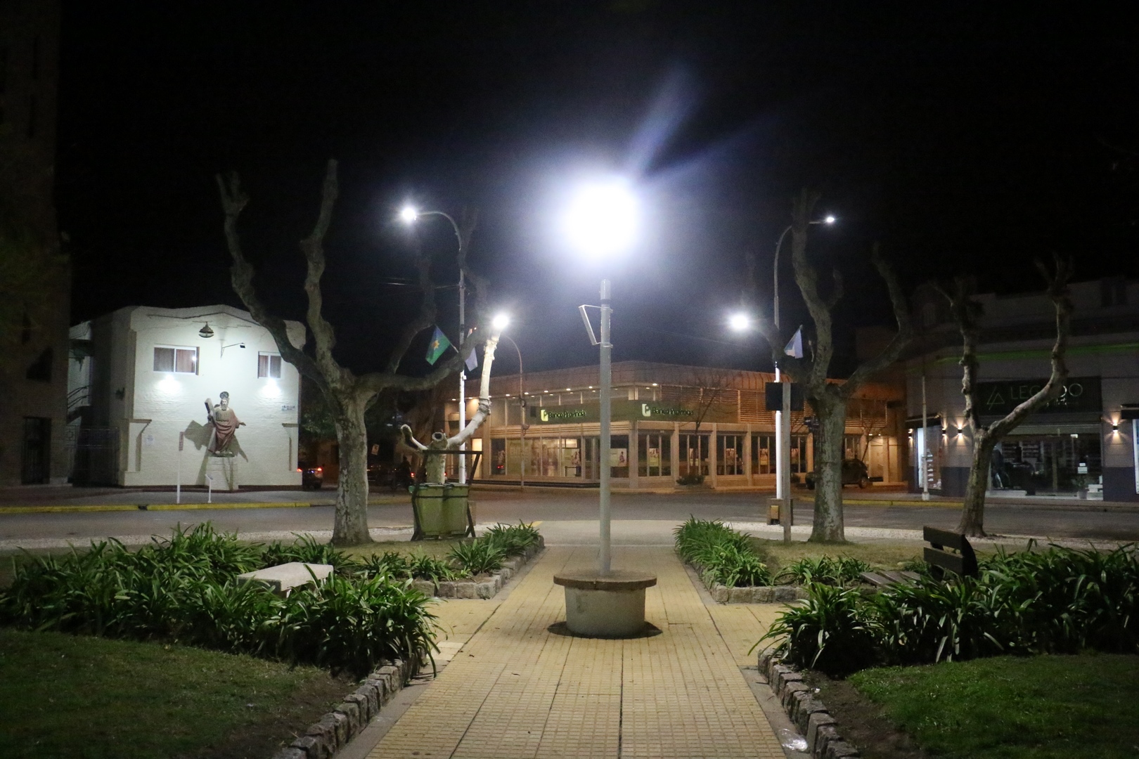 Continuando con la puesta en valor de la plaza principal, en el día de ayer se colocaron nuevas luminarias en el centro de la misma, rodeando la estatua a la Libertad y en las diagonales.