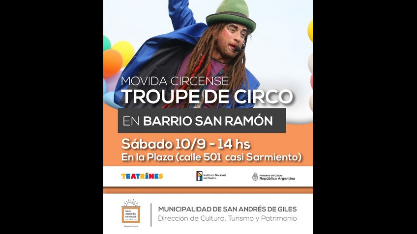 El sábado 10 de septiembre a las 14 horas, habrá movida circense en la plaza del barrio San Ramón, en calle 501 casi Sarmiento.