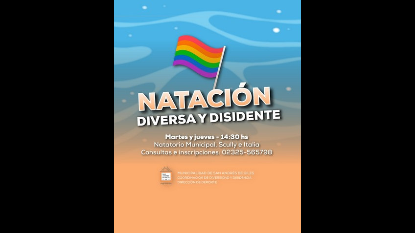 Los martes y jueves a las 14:30 horas, en el Natatorio Municipal se brindan clases de Natación para personas del colectivo LGBTQI+.
