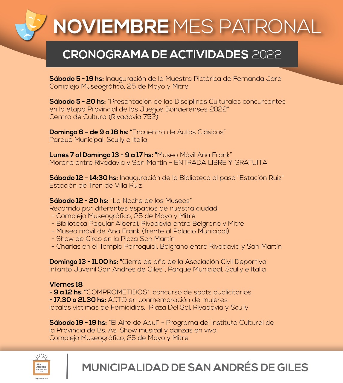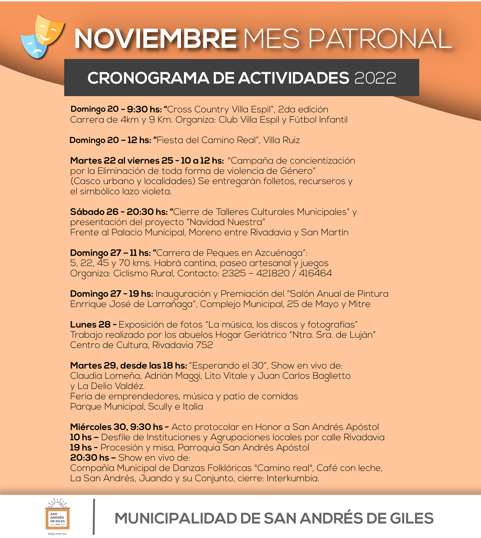 NOVIEMBRE, MES PATRONAL - Cronograma de actividades 2022