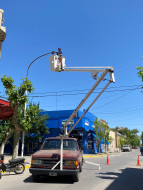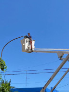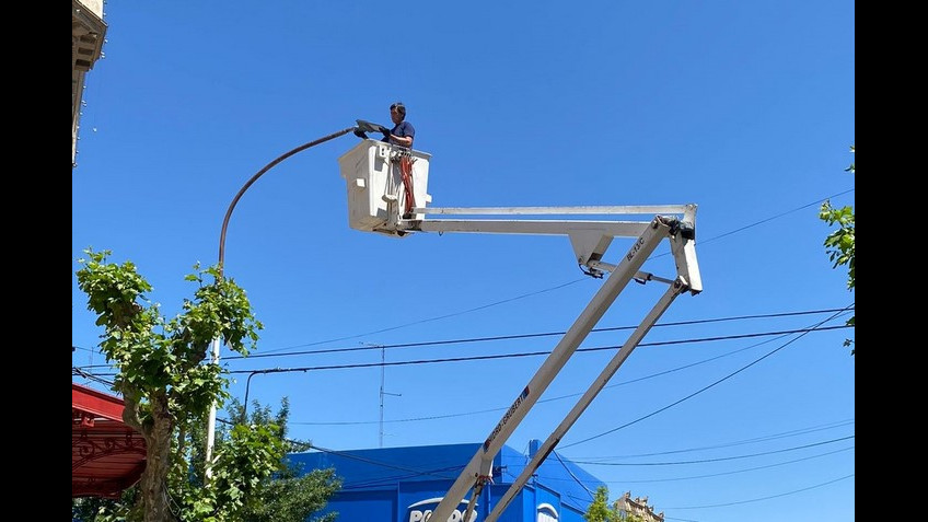 En el día de ayer se terminaron de colocar las últimas lámparas led sobre calle Rivadavia. La nueva iluminación del centro de nuestra ciudad recorre avenida Cámpora y calle Rivadavia.