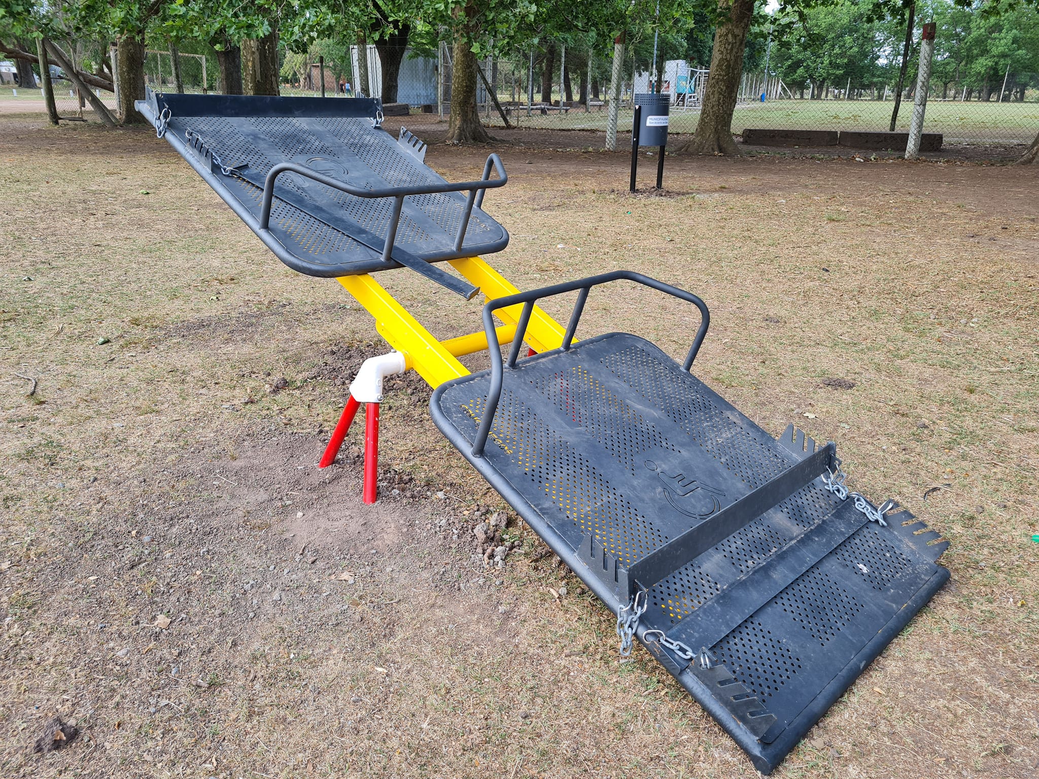 Se agregaron 1 tobogán, 3 sube y baja, 1 hamaca cuádruple con sillón inclusivo, 1 calesita inclusiva con capacidad para 2 sillas de ruedas y 1 sube y baja para 2 sillas de ruedas.