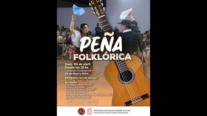 Una vez más, se organiza en el Complejo Museográfico y Cultural, 25 de Mayo y Mitre, una Peña Folklórica. Se realizará el domingo 30 de abril, desde las 12 horas.