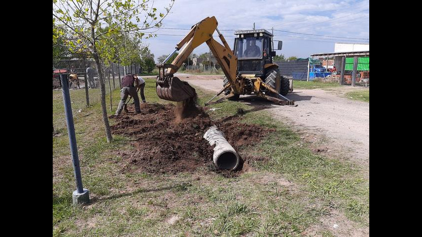 En el barrio San Bernardo, en la esquina de Manchi y Crucero General Belgrano, se colocaron 7 caños de 40 centímetros de diámetro.