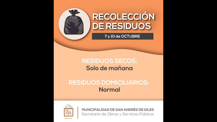 Recolección de residuos en los feriados del 7 y 10 de octubre