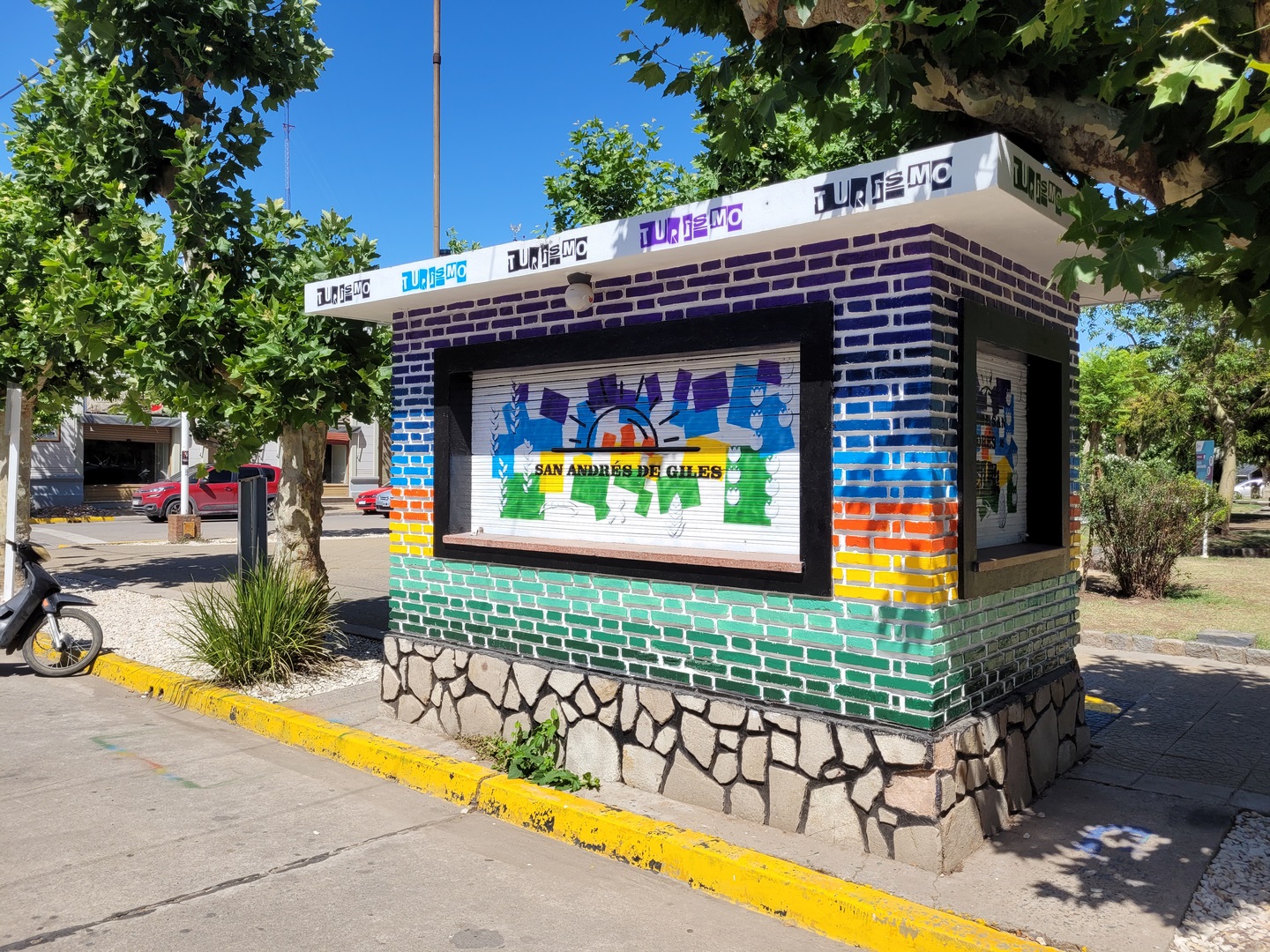 El intendente Gesualdi les comentó a los más pequeños que hace muchos años en el lugar había un kiosco en manos de Marta, quién se jubiló, y entonces se decidió usar el lugar para brindar información al turista y ahora, además se lo mejoró, sumando también el mosaiquismo en los escudos de la plaza San Martín y la colocación de luces led.