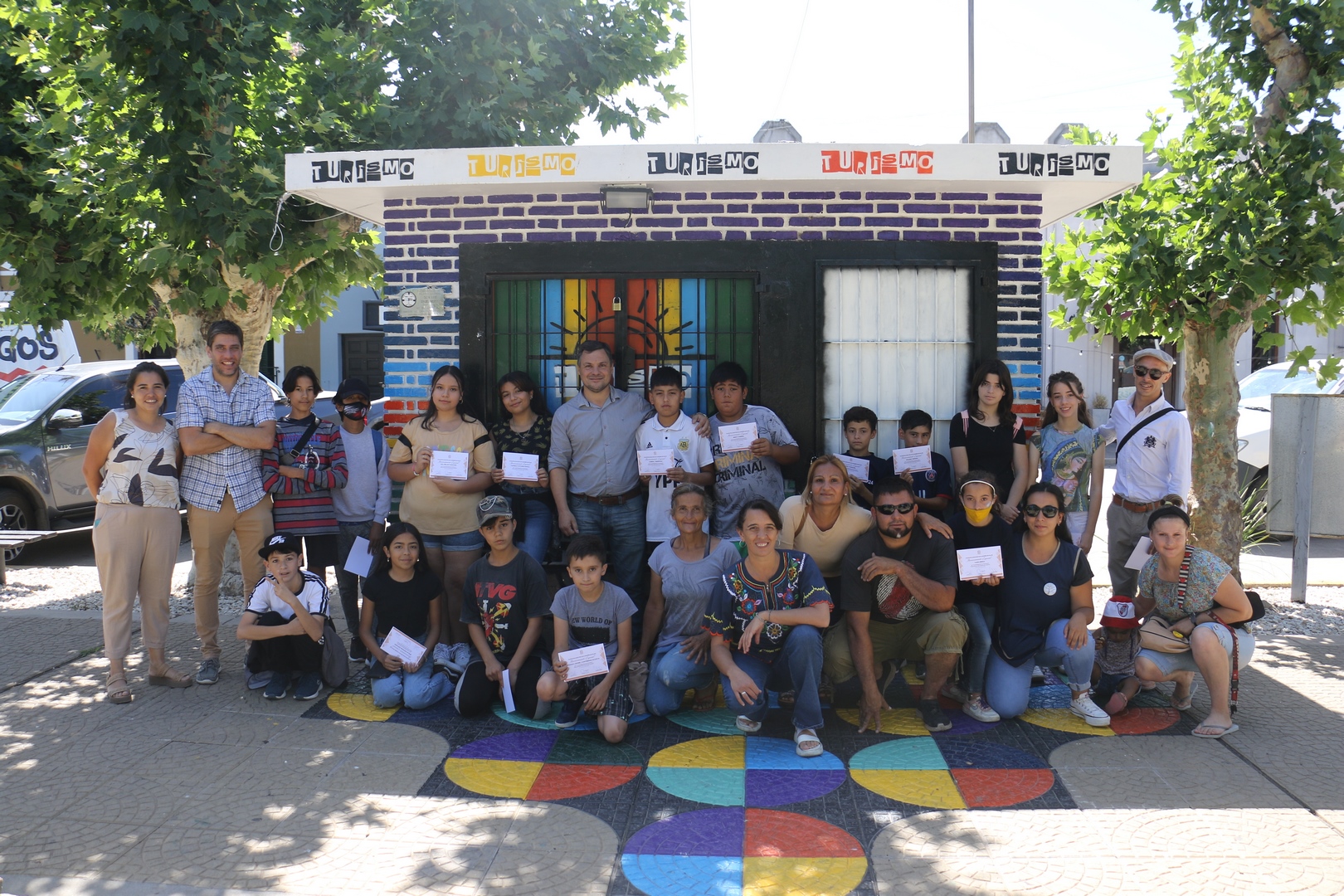 El intendente Miguel Gesualdi hizo entrega de certificados de reconocimiento a los alumnos que intervinieron con gran colorido la Oficina de Turismo de la mano de sus profesores Natalia Chertudi y Francisco Daverio. La misma se encuentra en la esquina de Rivadavia y Belgrano, en la plaza San Martín.