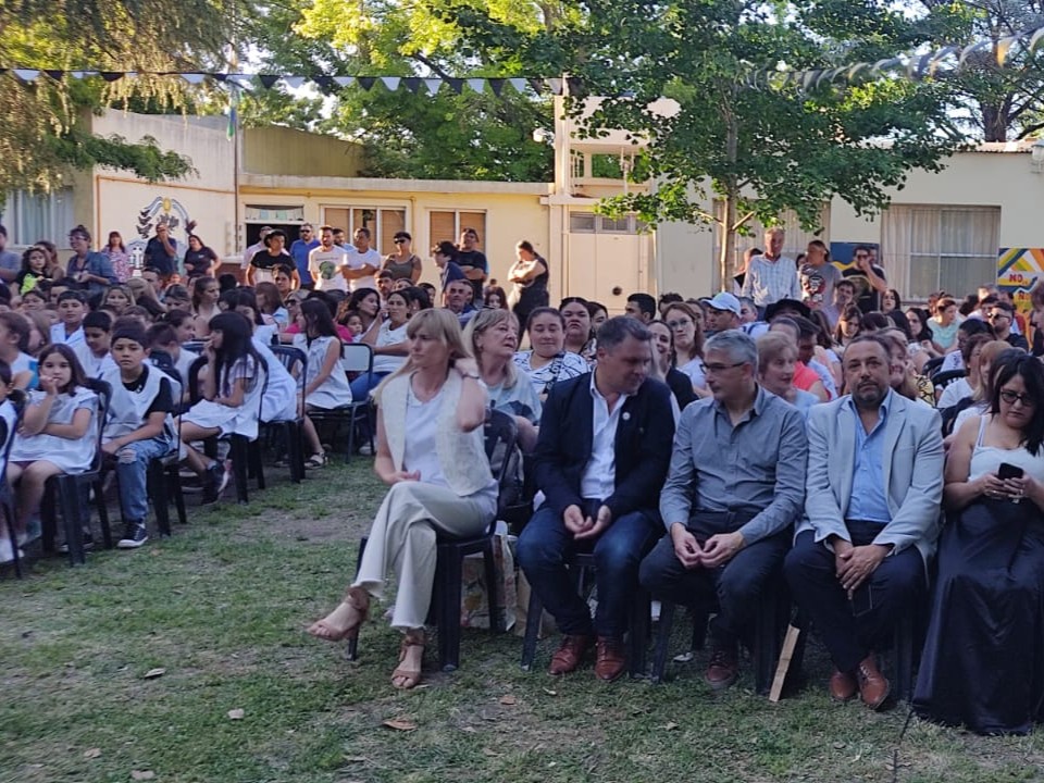 El intendente Miguel Gesualdi estuvo presente junto al director de Políticas y Gestión Educativa, Gustavo Lennard y la delegada del pueblo, Silvia López, acompañando a la directora del establecimiento Cecilia Dus, miembros de la Cooperadora, docentes, auxiliares, inspectoras de educación, ex docentes, alumnos, familiares y vecinos.