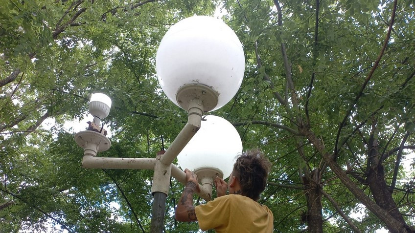 Se completó la ampliación de luminarias led en la plaza de Azcuénaga