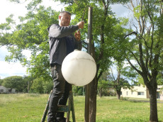 Personal municipal concluyó esta semana con la colocación de brazos triples en las columnas existentes para dotar de más iluminación a la plaza Miguel de Azcuénaga.