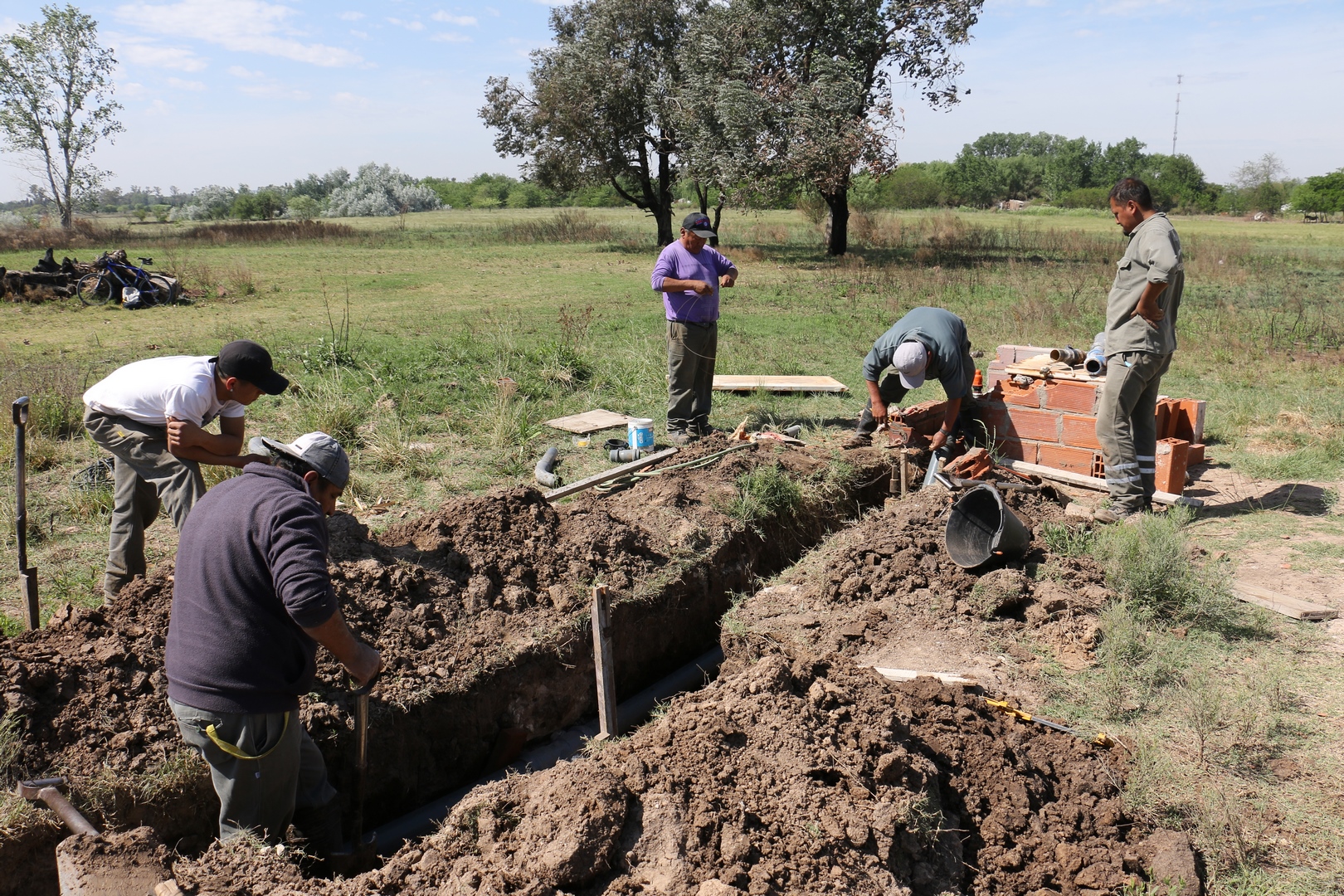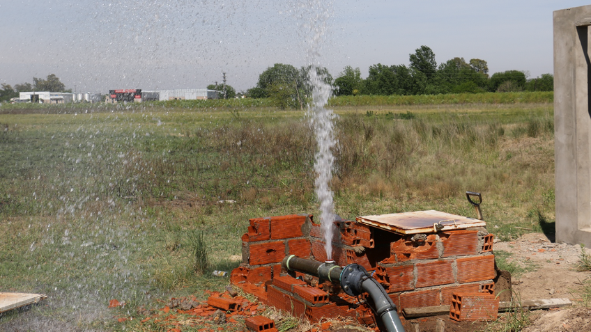 El día de hoy se realizó la conexión de la bomba ubicada en el Barrio San Mateo (Alsina y 525) a la nueva tubería de mayor diámetro. Se pasó de una tubería de 75 mm a una de 110 mm. Esto le dará mayor caudal a la zona oeste (barrios comprendidos entre la calle Illia y Alsina oeste y la calle 501 a 525).