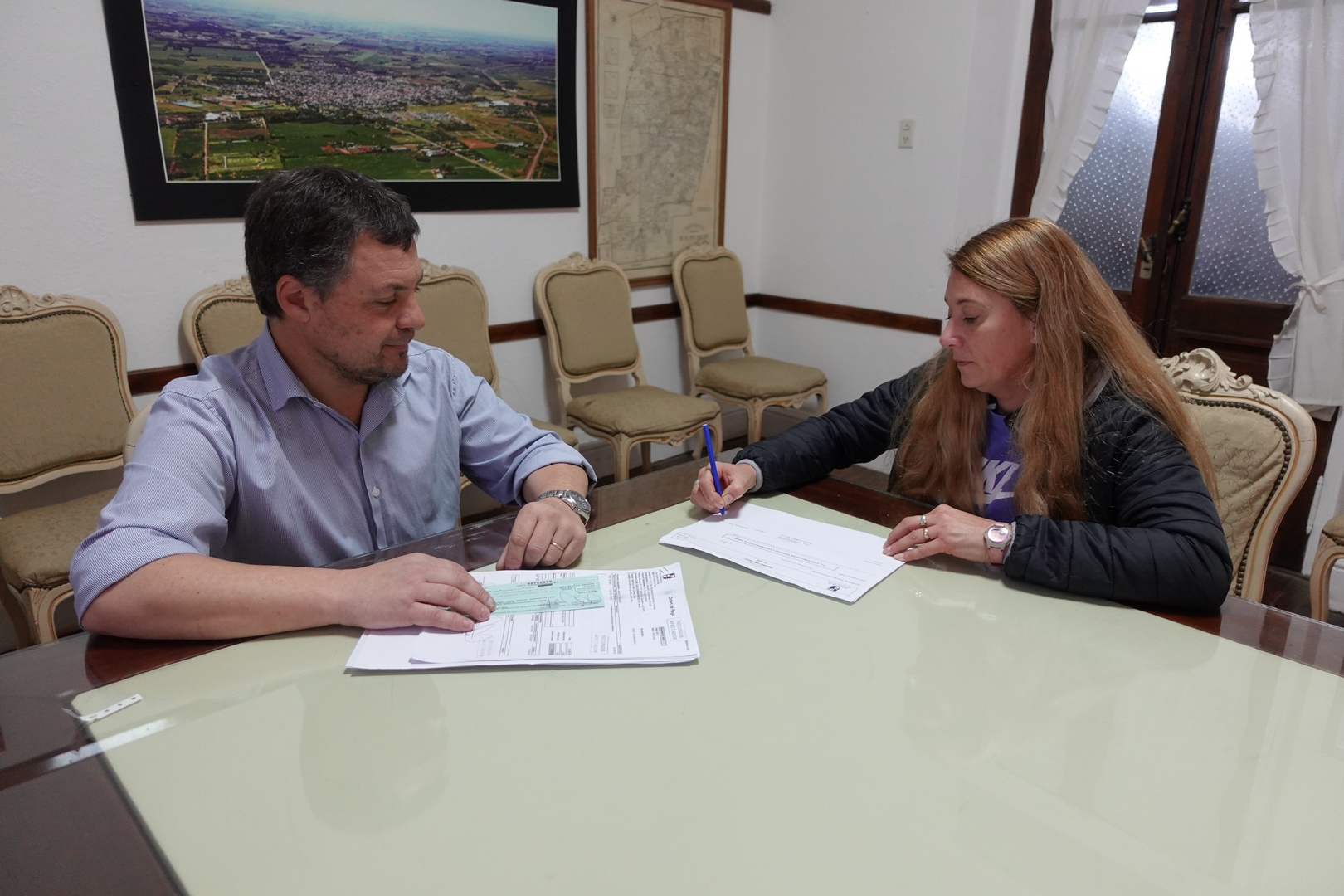 El intendente Municipal Miguel Gesualdi hizo entrega de un subsidio para gastos de funcionamiento al Centro de Educación Física Nº 24. Fue recibido este lunes 1 agosto por la asesora de la institución deportiva, Fernanda Ghessi.