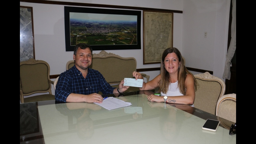 El intendente Miguel Gesualdi hizo entrega a la presidenta del Consejo Escolar, Micaela Albeverio de un subsidio de tres millones de pesos (Fondo Educativo) con el objetivo de realizar obras en escuelas.