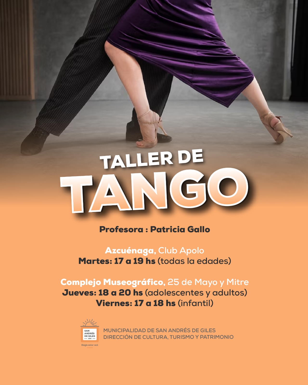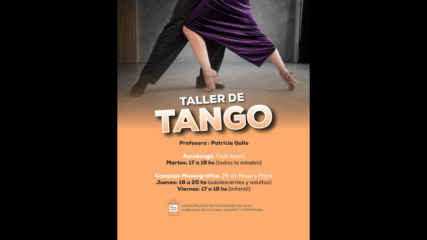 Participá del Taller de Tango en la localidad de Azcuénaga en el Club Apolo  y en la ciudad, en el Complejo Museográfico, 25 de Mayo y Mitre.