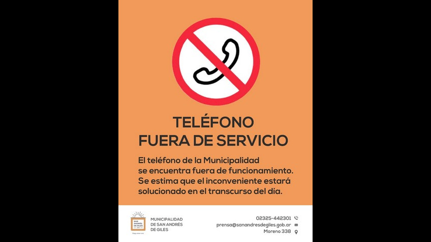 El teléfono de la Municipalidad se encuentra fuera de funcionamiento.