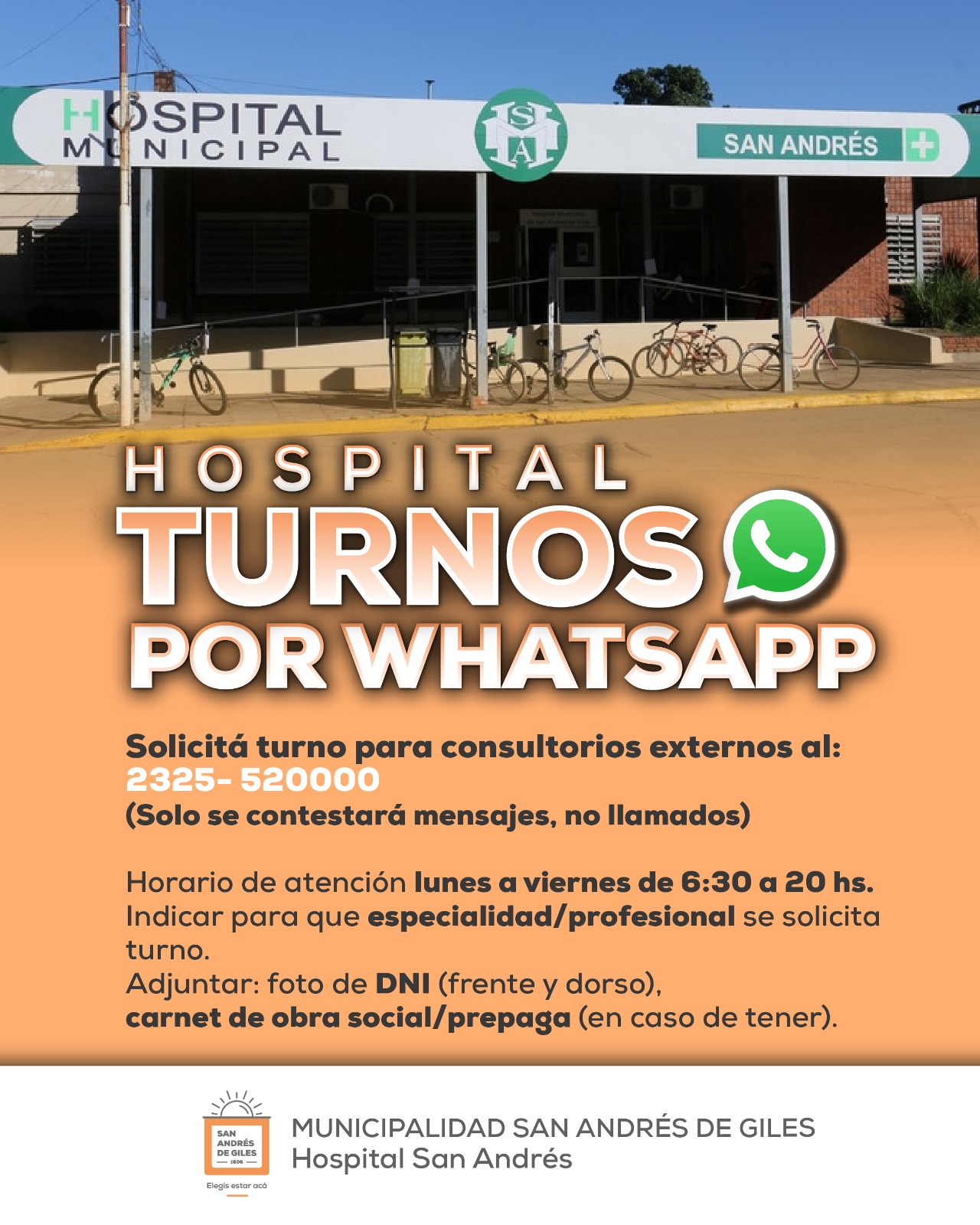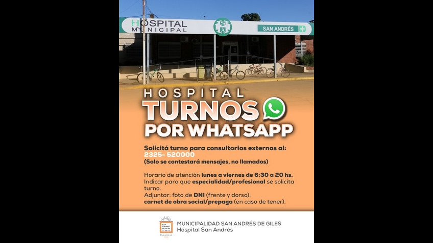 Desde ahora, podés solicitar turnos por WhatsApp en los Consultorios Externos del Hospital Municipal “San Andrés”.