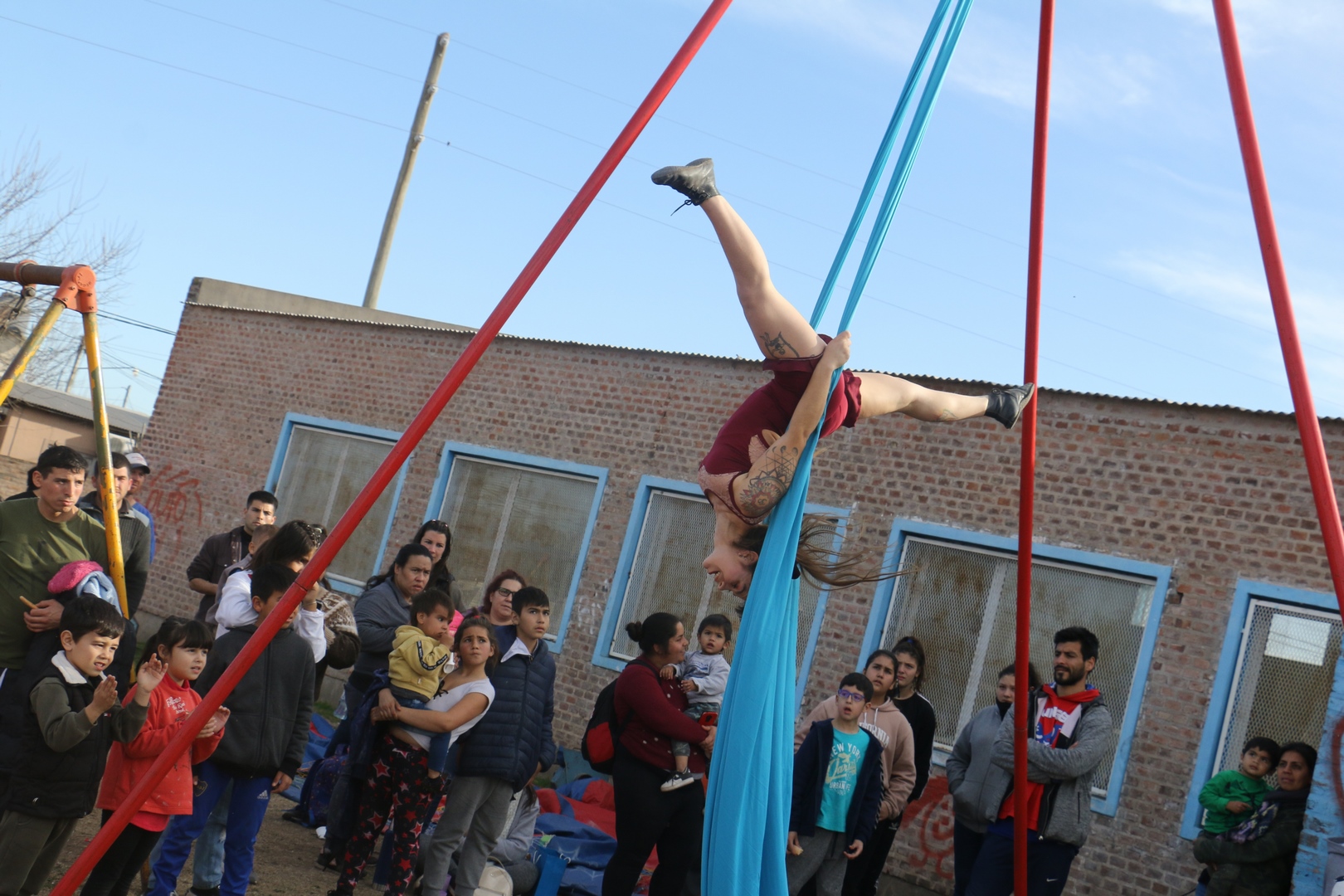 Ayer jueves 21 se desarrollaron las actividades del cuarto día de las vacaciones con Bufanda. El equipo municipal visitó la plaza del Barrio Bicentenario.
