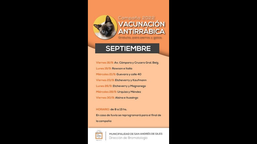 Estos son los puestos de la Campaña de Vacunación Antirrábica de la Dirección Municipal de Bromatología que están disponibles hasta el último día de septiembre.