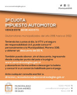 La Dirección de Recaudación informa que este 22 de agosto vence la 3ª cuota del impuesto automotor municipalizado.