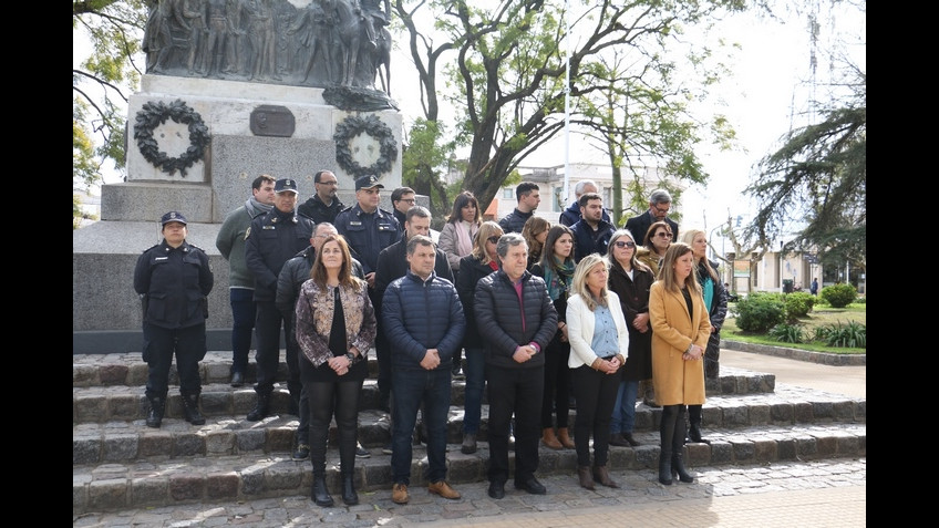 El acto se realizó en la tarde del 17 de agosto en plaza San Martín presidido por el intendente Miguel Gesualdi, acompañado por el presidente del H.C.D., Gustavo Lennard, la presidenta del Consejo Escolar, Micaela Albeverio, entre otros.