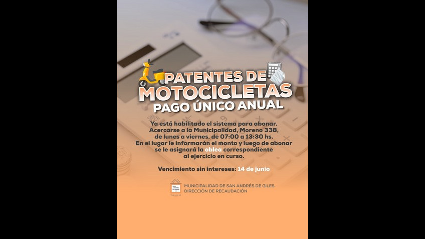 La Dirección de Recaudación informó que ya está habilitado el sistema para abonar el único pago anual de patente de motos.